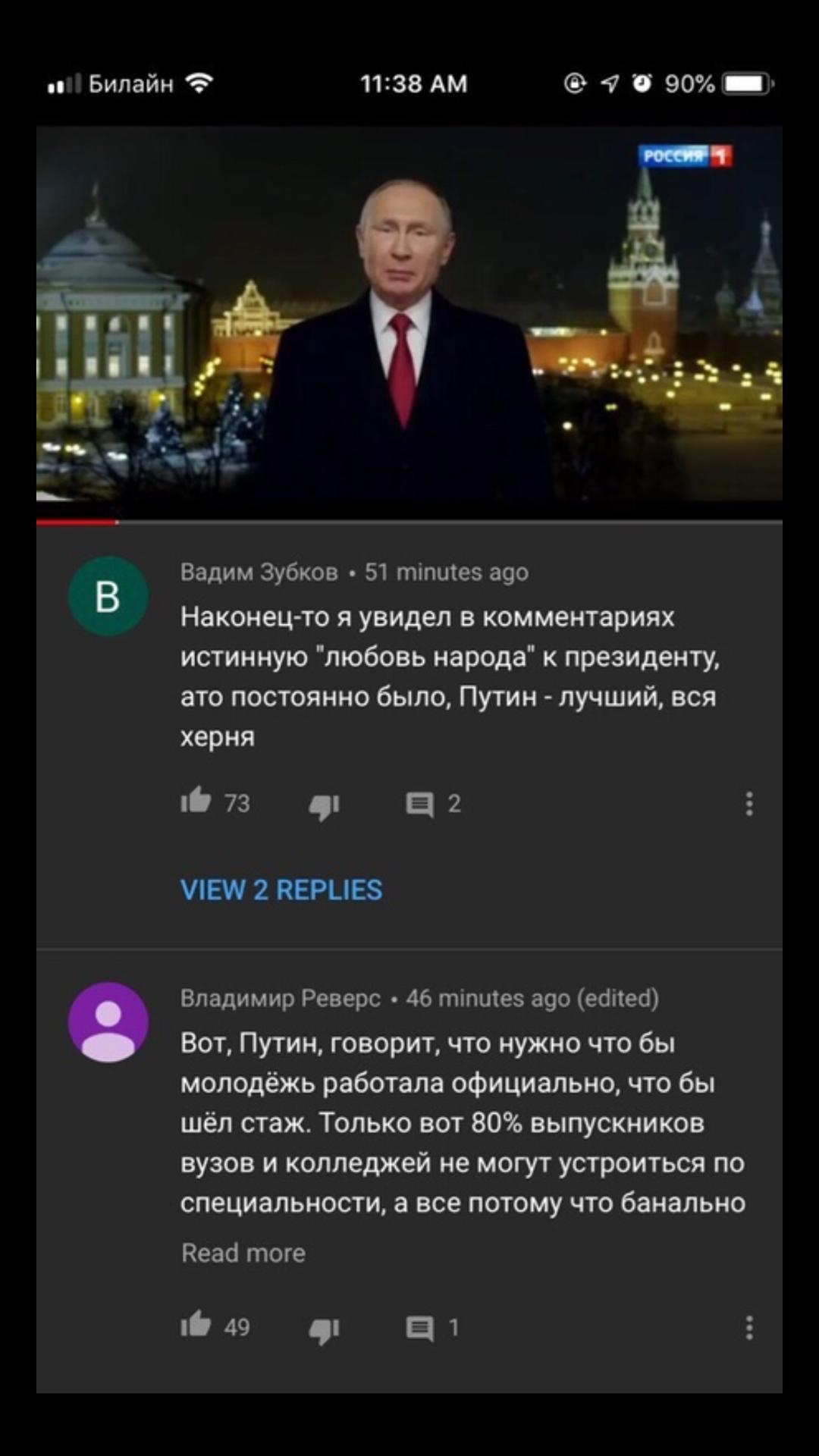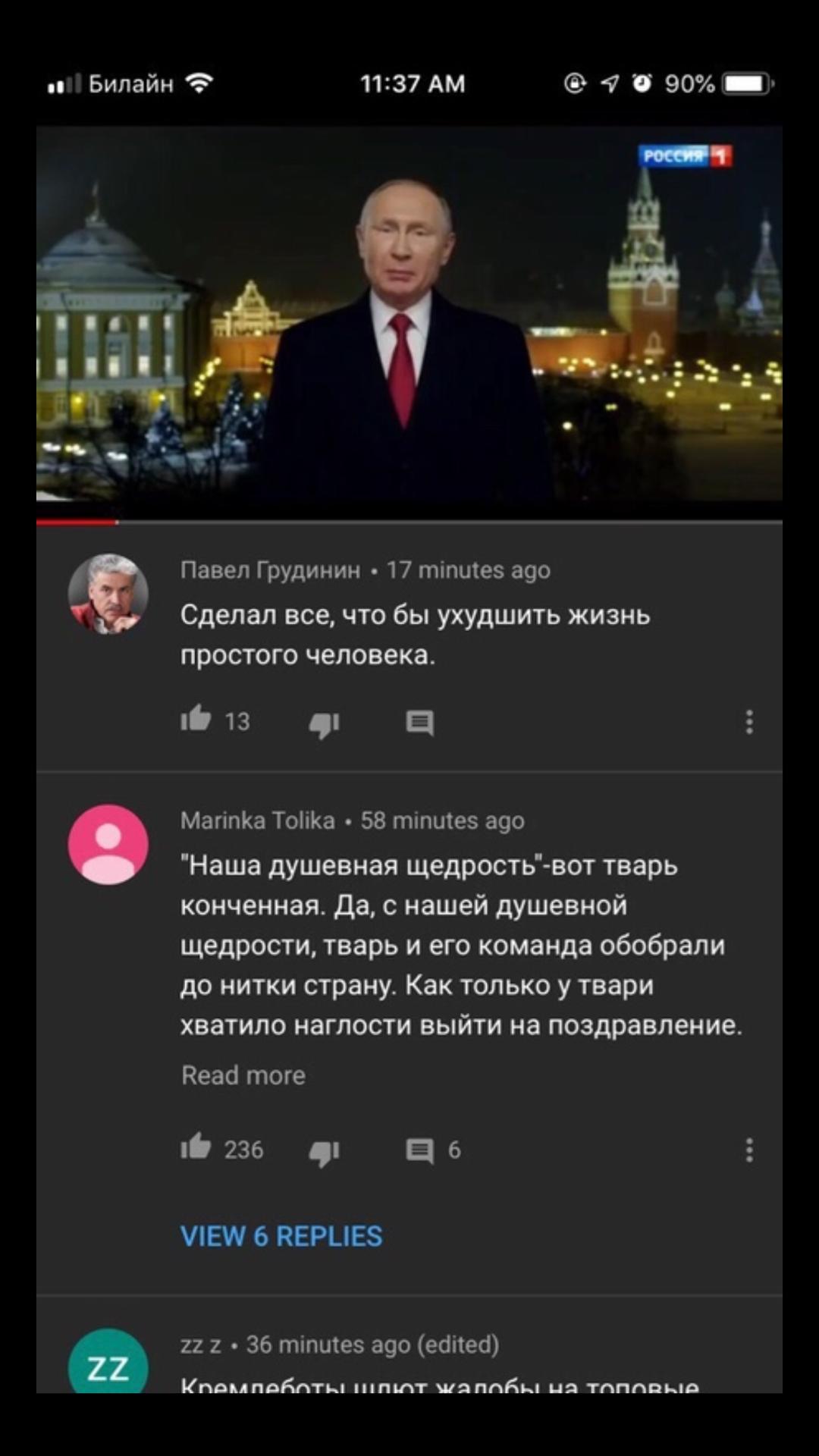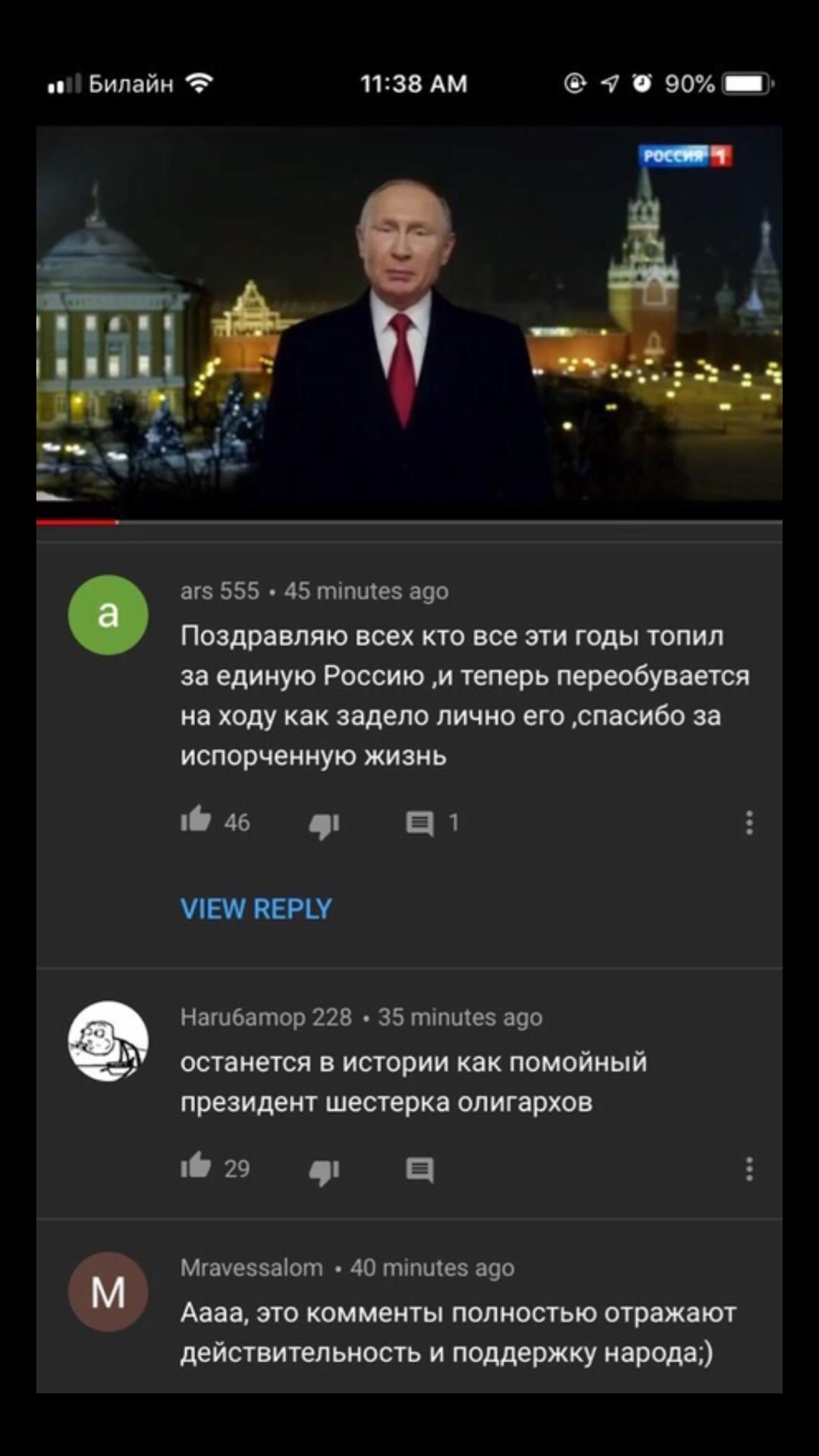 Скрины из комментариев под новогодним поздравлением президента РФ В.В.Путина появятся в комментариях под статьёй.