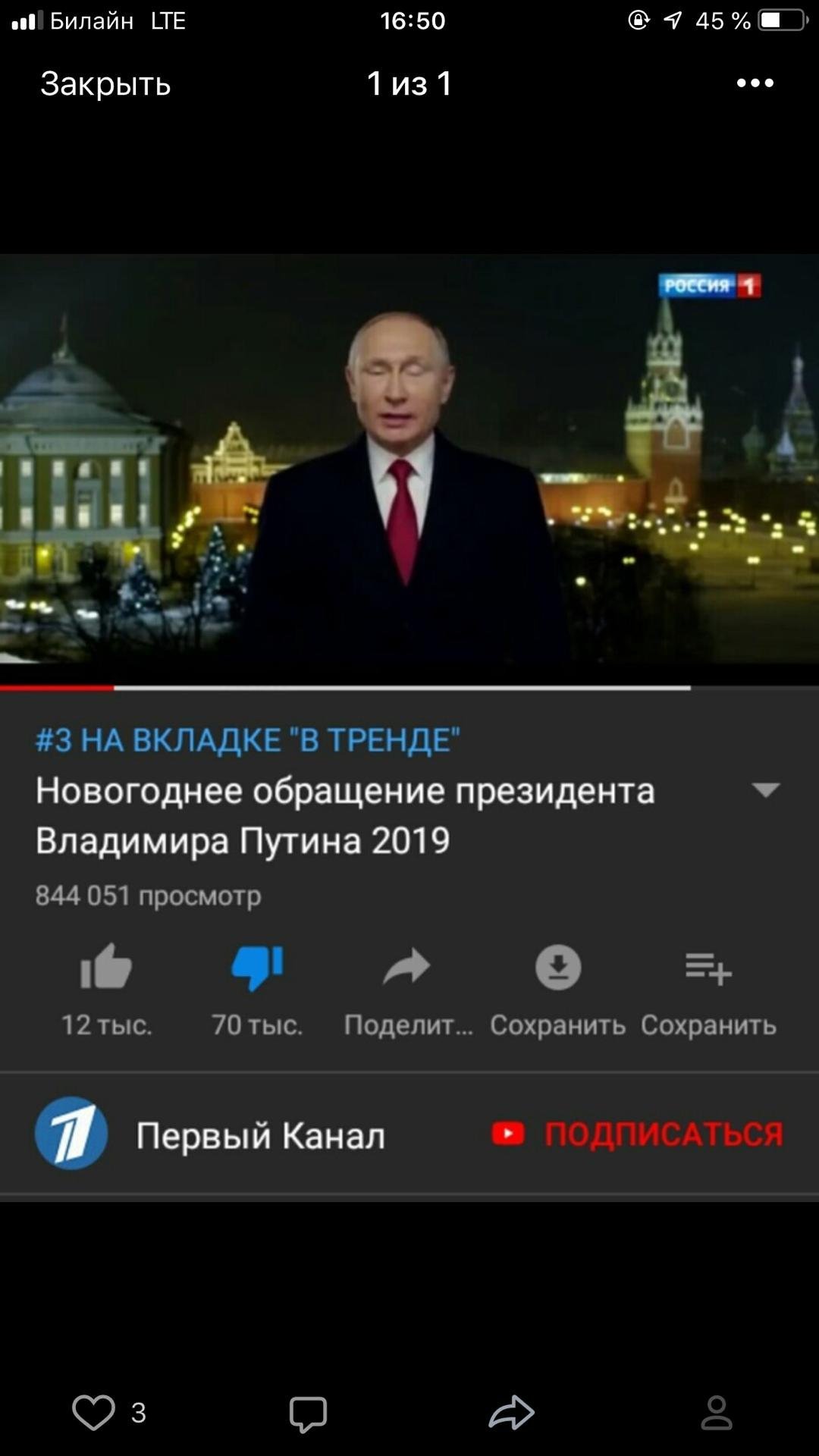 Во-вторых, количество гневных комментариев было столь велико, что «Россия-1» была вынуждена отключить комментарии к записи Путина.