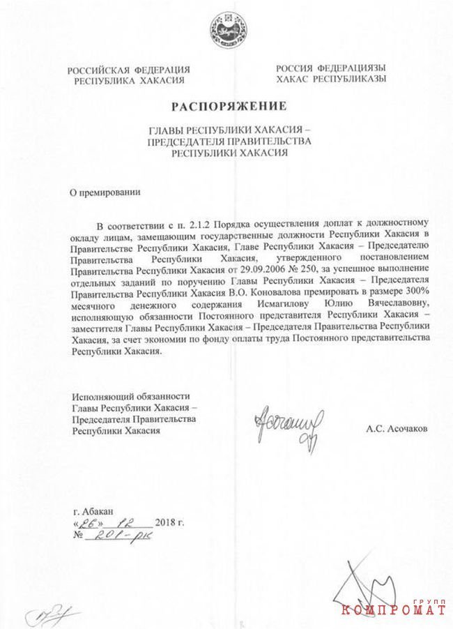 Нехорошая история с многократными премиями, которыми глава Хакасии Валентин Коновалов одарил перед Новым годом особо приближенных, уже стоила должности высокопоставленному чиновнику из серого дома. Как стало нам известно из собственных источников, без работы осталась Галина Спиридонова, занимавшая должность первого заместителя министра финансов Хакасии.