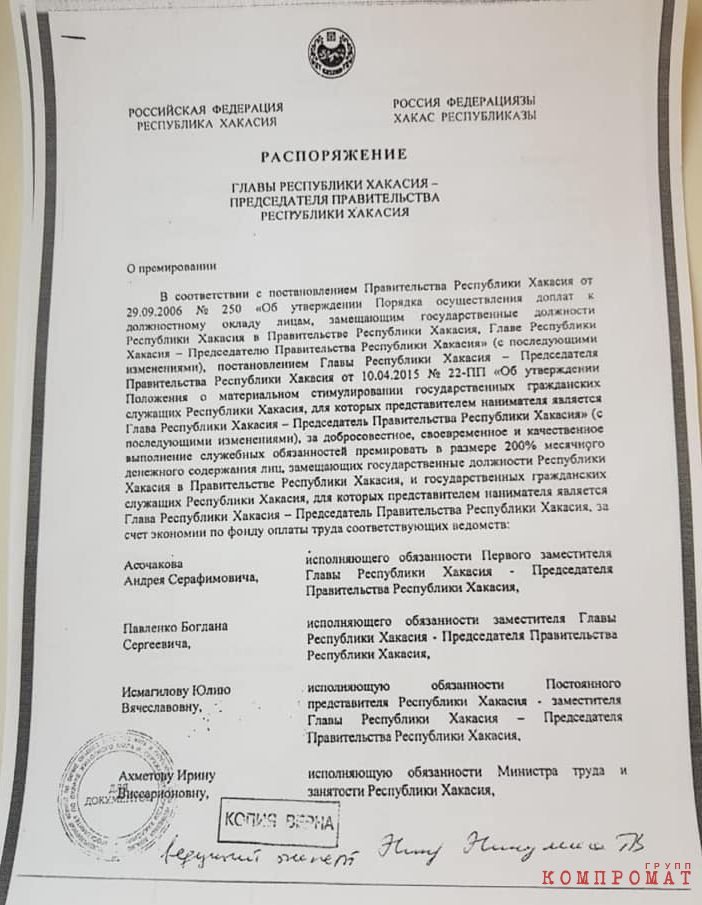 И всё бы ничего, но в одно прекрасное утро Галина Спиридонова наткнулась на это злополучное распоряжение о назначении премиальных в размере 200%. И с удивлением узнала из документа, что деньги на премии, оказывается, были. Но их все до копеечки положила себе в карман министр финансов Ирина Войнова.