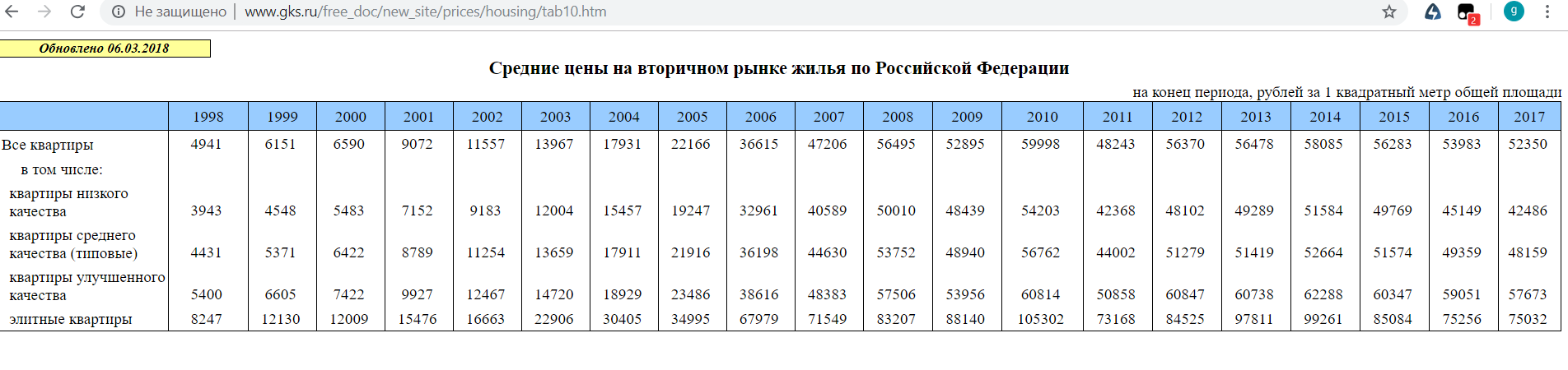 Ошибка № 2 квартиру внукам купить не получится, открываем сайт росстата и видим что за 19 лет с 1998 по 2017 гг. типовые квартиры на рынке вторичных квартир подорожали в 11 раз (а за 10 лет 1998-2008 в 12 раз). Сечас двушка в провинции стоит 1,6 млн руб, умножаем на 11, получаем 17,6 млн руб. Это за 19 лет, а что будет через 37 лет?