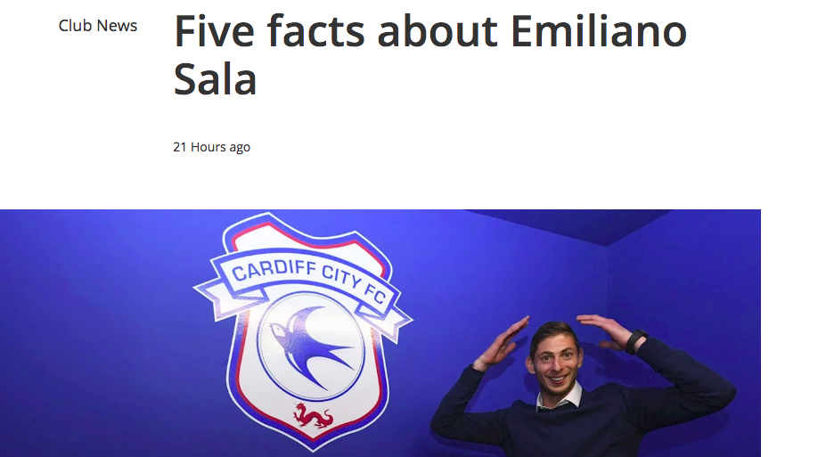 На главной странице официального сайта валлийского клуба все еще стоит материал под заголовком «Пять фактов об Эмилиано Сале», выпущенный сутки назад.