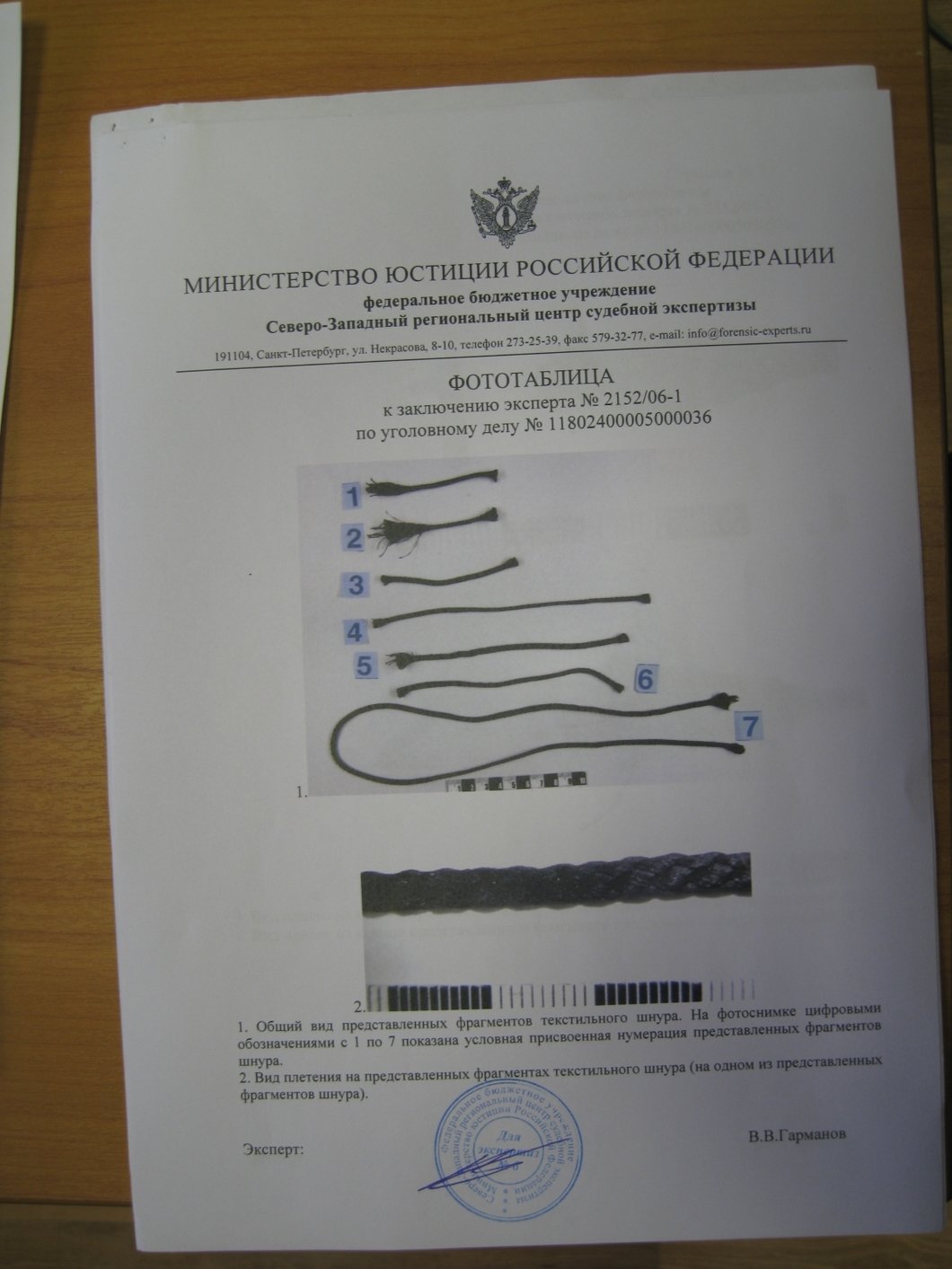 «В кулиске куртки Пшеничного В.А. не имеется [волокон] общей родовой принадлежности с волокнами, входящими в состав представленного шнура», — написали эксперты.