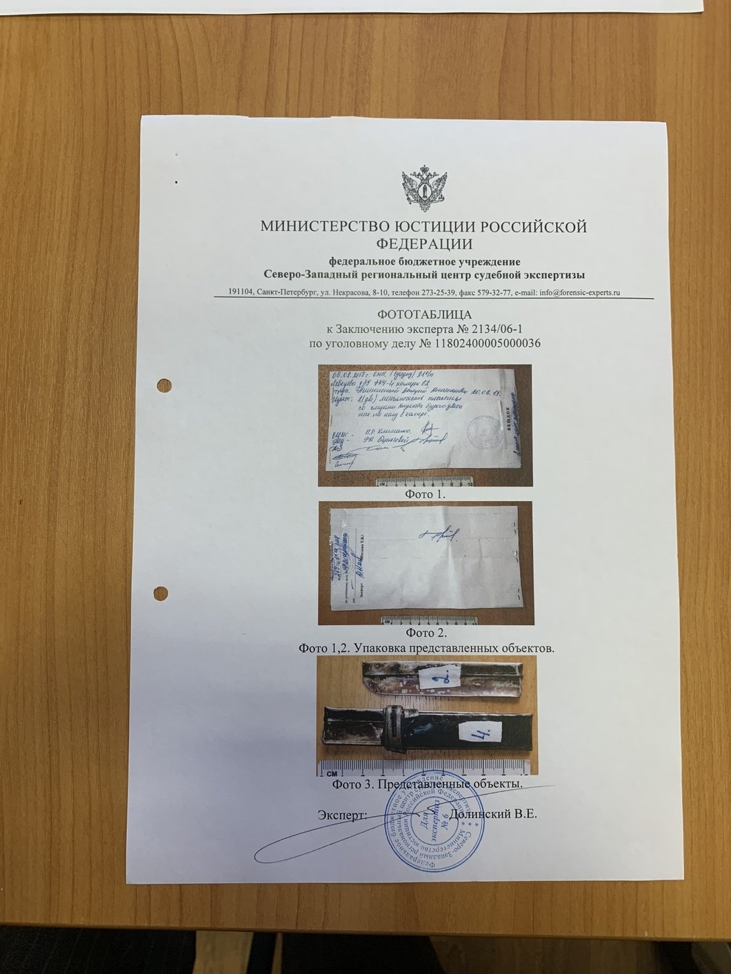 В сентябре были завершены новые экспертизы по делу о «самоубийстве». Выяснилось, что металлические пластины «со следами вещества бурого цвета», которыми погибший якобы резал себе вены, «к изделиям промышленного изготовления — так называемым супинаторам — не относятся». Согласно выводам экспертов, эти «две металлические пластины ранее составляли единое целое, а именно — изготовленный самодельным способом из листа тонкого металла нож».