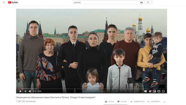 Обращение семьи Шестуна к президенту Путину за сутки собрало более миллиона просмотров