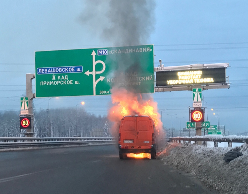 Как рассказали «Фонтанке» в пресс-службе ООО «Магистраль северной столицы», «ГАЗ» загорелся на ходу, проехав пункт оплаты. Водитель остановился у ограждения. Охранники пункта оплаты, заметив пожар, подбежали с огнетушителями, но огонь к тому моменту уже охватил автомобиль, и к нему было практически не подойти. Им оставалось только убедиться, что в салоне нет людей. Вскоре на место прибыли два расчёта МЧС, которые ликвидировали пожар.