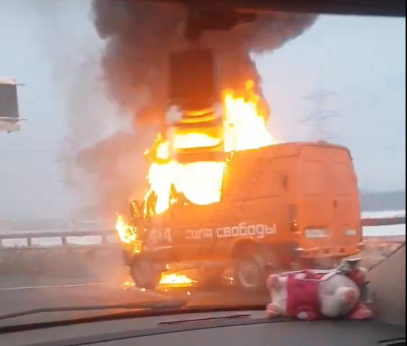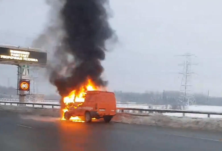 На ЗСД вспыхнул фургон. Сотрудники магистрали пытались помочь, но было поздно