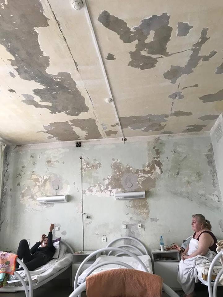 Фотографией, сделанной в больнице, поделился красноярец Олег Ровда. На его снимке — палата с ужасно обшарпанными стенами и потолком. И там, и там видны трещины.