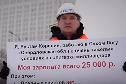 В Москве Тверской районный суд признал виновным в совершении административного правонарушения уральского рабочего Рустама Корелина. Мужчина был недоволен низкой зарплатой и устраивал одиночные пикеты. Служба «Би-би-си» сообщила, что его обвинили в нарушении порядка проведения публичного мероприятия. Рустам Корелин работает на заводе «Форес» в Свердловской области шихтовщиком. Несмотря на то, что производство является вредным, он получает всего 25 тысяч рублей в месяц.