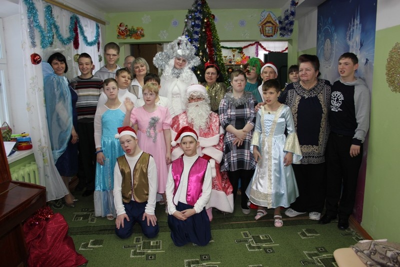Новый год в доме-интернате, никто не ожидает неприятностей. Справа — директор Лариса Черенкевич