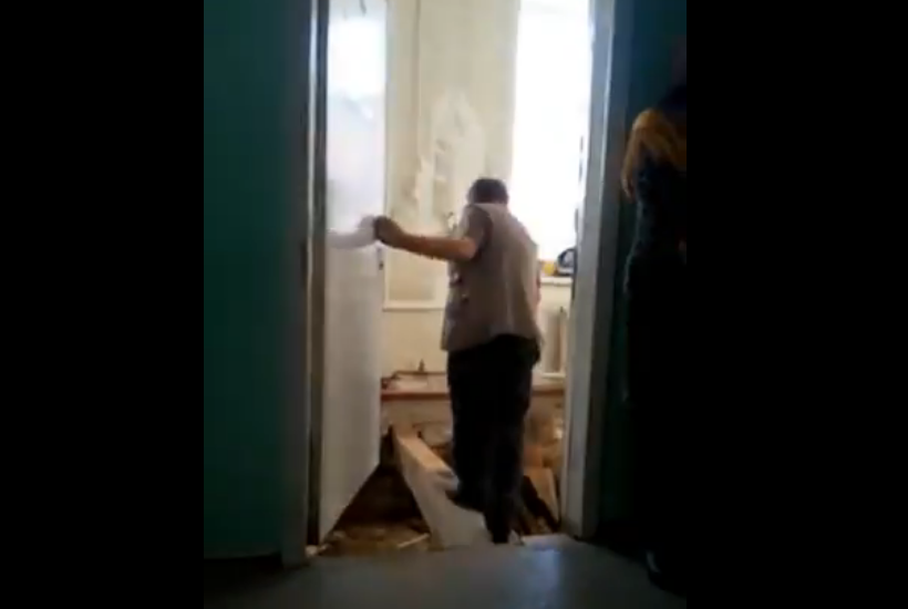 Помимо этого пользователь, разместивший ролик, написал, что пол в больнице провалился, и его просто заменили балкой.