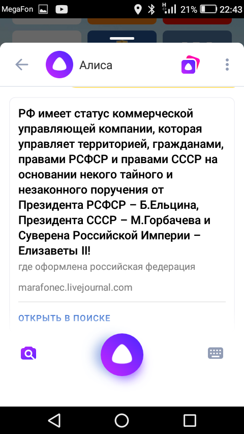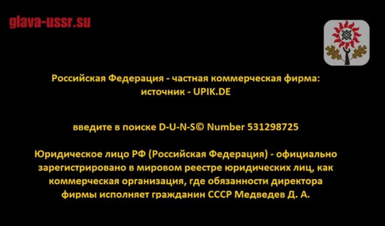 Это я уже всё читала и всё видела. Ровно то что и правительство наше зарегистрировано чёрт где знает, и что мы вообще не граждане России. Так в от, у меня брать работает в прокуратуре, племянница работает в адвокатуре, и всю эту чушь мы уже не раз обсуждали, это всё фейки! Всё не так буквально, как нам это преподносят и как вы это буквально понимаете, увы!