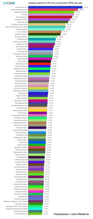 Название субъекта РФ Значение средней ЗП, в рублях.