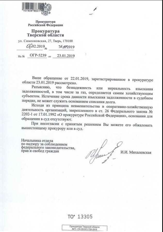 Я не юрист. Спорить не буду по данному поводу - нормальный или ненормальный ответ... Смысл в другом - в Чечне списали ведь, есть решение суда... Почему по аналогии нельзя списать остальным россиянам? Российское руководство кому только не списывало долги, но только не россиянам... Как бы суть в этом...