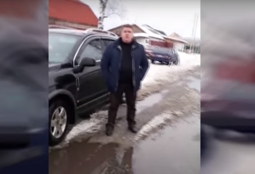 Увидев видеокамеру, чиновник не представился и повел себя крайне недоброжелательно. Мужчина посоветовал жителям «сначала протрезветь», прежде чем искать лужу. После этого он сел в свой автомобиль и чуть не сбил женщину, которая в этот момент вела видеосъемку.