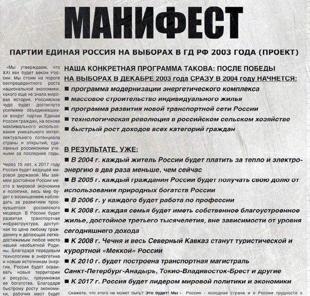 Будучи президентом, он обещал полнейшую газификацию в России, в 2015 году, обещание не выполнил. За это он стал премьер-министром, т.к. главное обещать и не краснея врать в команде президента.