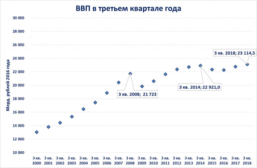 ВВП в третьем квартале 2018 года стал рекордным за всю историю России.