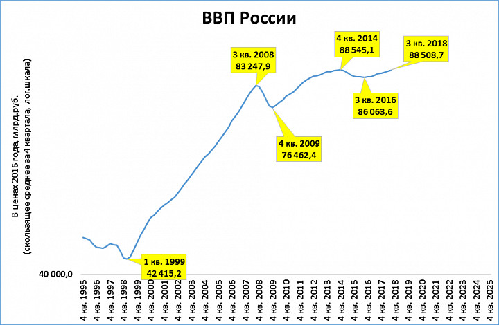 ВВП в третьем квартале 2018 года составил 23,1 трлн. Рублей в ценах 2016 года.
