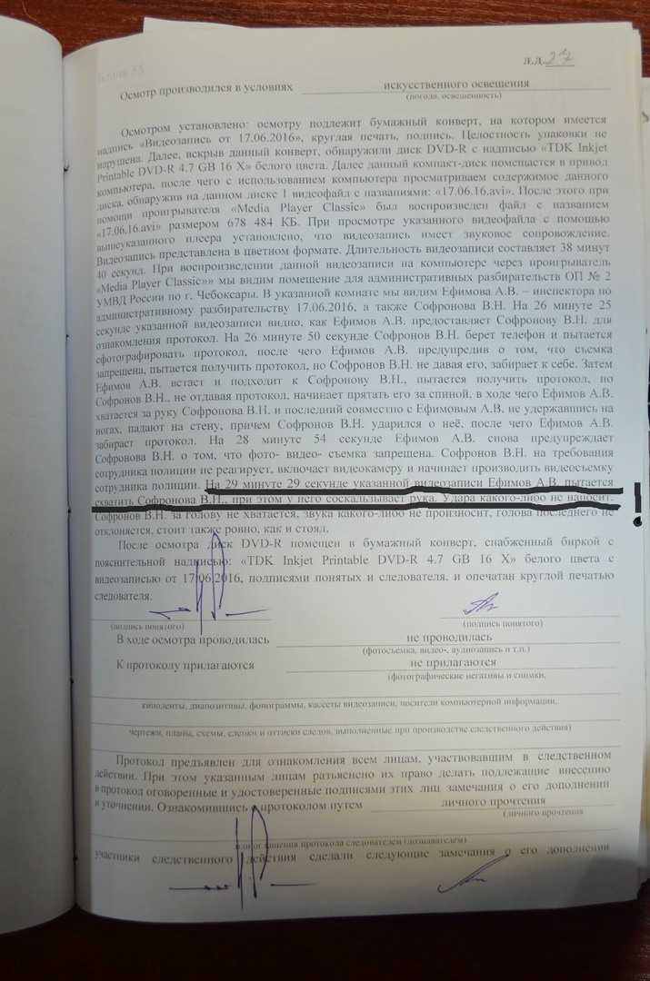 Следователь в протоколе осмотра видеозаписи удар в затылок кулаком не зафиксировал и написал, что у сотрудника полиции "соскользнула рука, удара какого-либо не наносит". Только вот от удара у заявителя с руки вылетает телефон.