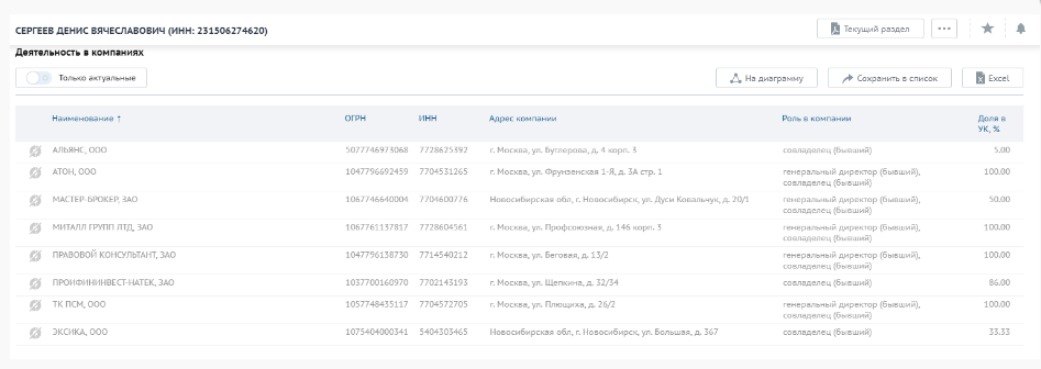 Под своим реальным именем Сергеев стал акционером или менеджером как минимум 8 компаний (ныне ликвидированных), большинство из которых совпадают по своим названиям с известными крупными корпорациями: