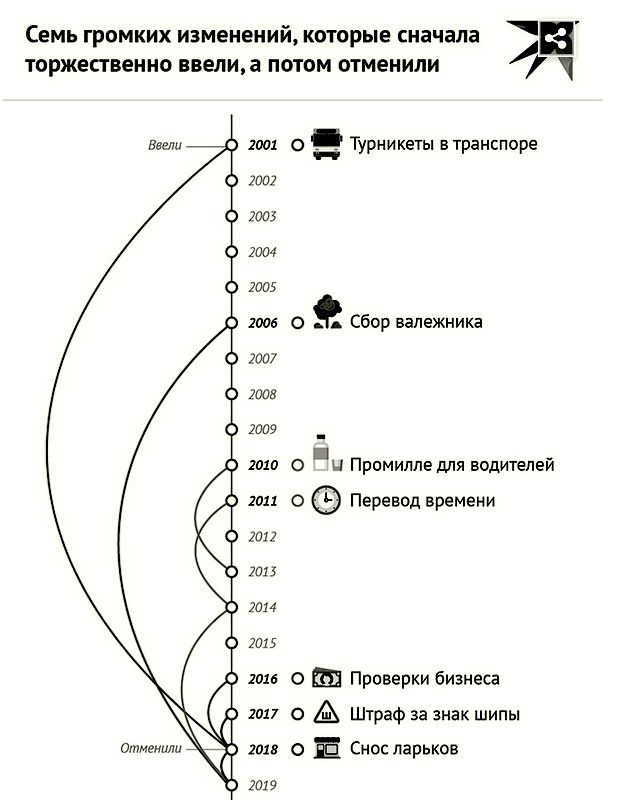 Шипы, Ларьки, Валежник: семь громких законодательных изменений, которые сначала торжественно ввели, а потом отменили.