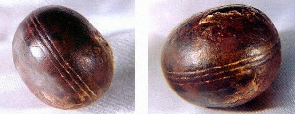 Возраст этих объектов, исходя из породы, где они находятся, составляет 2,8 млрд лет и пришли они к нам из докембрийского периода! Диаметр шаров почти 2,5 сантиметра, а на части из них вырезаны три параллельные черты, тянущиеся по оси находки.