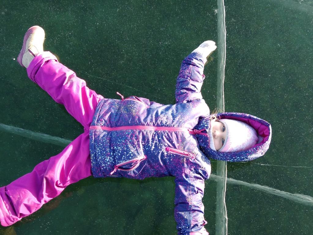 Многие на льду катаются на коньках, на тюбах, просто гуляют, рассматривая лед под ногами. Кто-то лежит поверх льда, отдыхая и наслаждаясь чистейшим воздухом и природой.