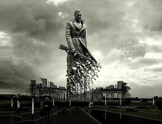 На месте кровавых сражений подо Ржевом, в сотне метров от трассы М-9 скульптор Коробцов и архитектор Фомин возводят 25-метровый монумент.