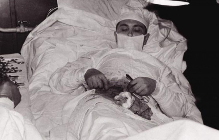 Вот какие раньше были хирурги, могли сами себя оперировать.