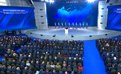 Нынешнее послание ФС РФ является 15-ым для Путина. Свое первое президентское послание он огласил 8 июля 2000 года - главной темой обращения стало усиление вертикали власти. В послании 2018 года, которое Владимир Путин огласил 1 марта, президент уделил много внимания вооружению страны, в том числе новым видам оружия. Тогда он заявил, что "сдержать Россию, в том числе ее военную мощь, санкциями не удалось".