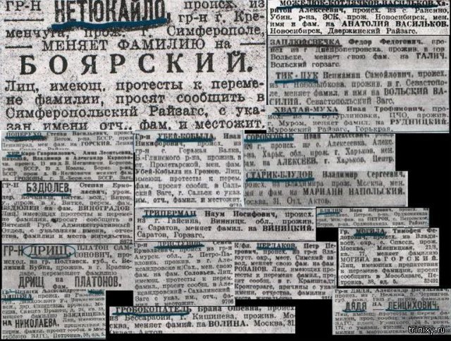 По смене фамилии вырезки повеселили. Эпичные фамилии были