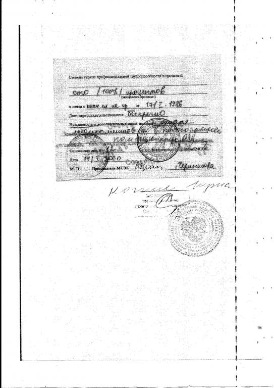 постановлением Министерства труда от 1980 года в 1981 году принудительно направлен на строительство Электростанции в Литве. 4.01.1986 года в следствие не обеспечения охраны выполнения работ высокого риска в особо опасных условиях произошел несчастный случай. АКТ-Ф-Н-1 составлен 17 01.1986 года. 14.01.2000 года МСЭК установило степень повреждения моего здоровья и проф способности. С 2000 года не могу найти защиту и истребовать Возмещение Компенсации выплат по страхованию Государством направившим на работу в республики СССР за причинение вреда здоровью трудовым увечьем. ФСС РФ, Последнее место работы РФ. В компенсации выплат по страхованию на мои свыше 500 обращений отказано. Мотив: я не имею права на возмещение Компенсации выплат по страхованию в соответствии с законодательством РФ.
