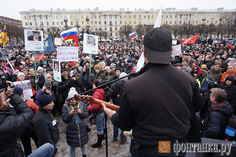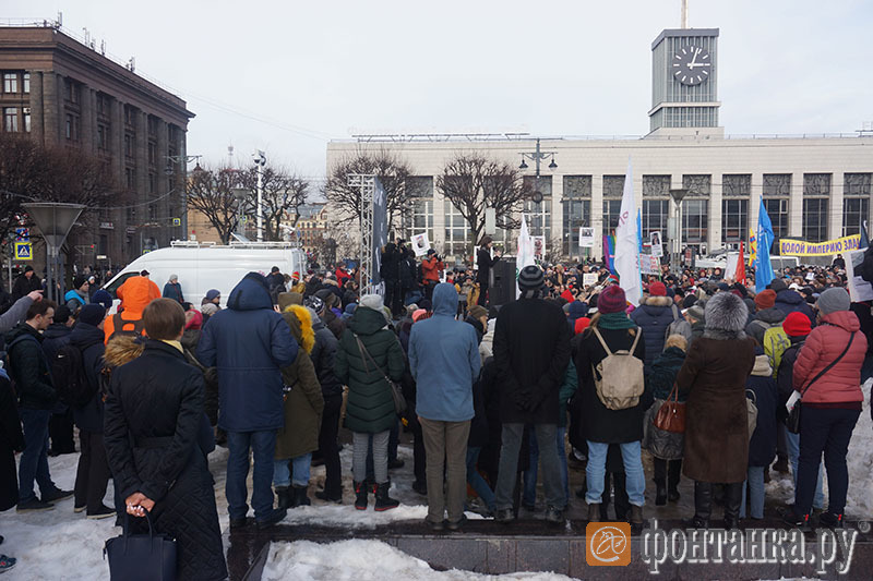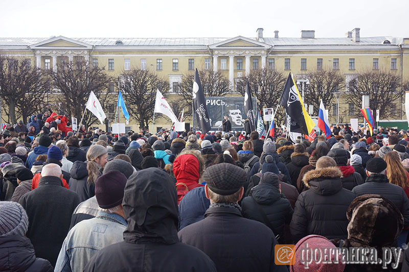 За участниками митинга в течение полутора часов наблюдал глава администрации Калининского района Василий Пониделко. Он рассказал «Фонтанке», что, по его оценке, на акцию пришло до 500 человек. Ранее «Фонтанка» сообщала о том, что на площади собрались до 1 тысячи участников. «Открытая Россия» сообщила о 3 тысячах митингующих. По предварительной информации, обошлось без происшествий.