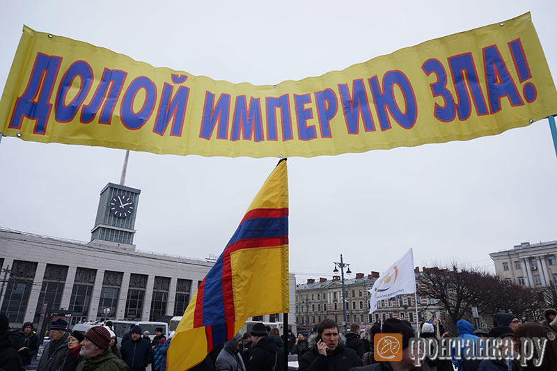 Не во всех лозунгах участники акции сошлись между собой. Так, депутат ЗакСа Михаил Амосов призвал оппозиционеров объединиться и вместе идти на выборы, кроме того, пытаться вести город и страну к демократическим переменам, а значит, отказаться от призыва к люстрациям. С ним не согласилась часть митингующих, принявшаяся скандировать то, против чего выступал Амосов.