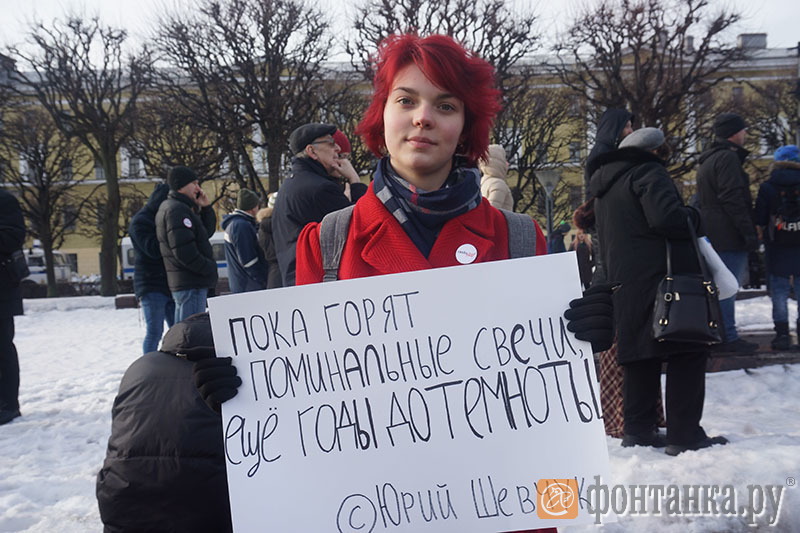 Как сообщает корреспондент «Фонтанки», на митинге, прошедшем на площади Ленина у Финляндского вокзала, выступили оппозиционные и общественные деятели. Со сцены они рассуждали о причинах убийства Немцова и о предстоящих выборах. «Его убила система»,-пришла к выводу активистка движения «Время» Мария Новикова. «Убийство – самое страшное преступление», – заявил со сцены врач Лев Щеглов.