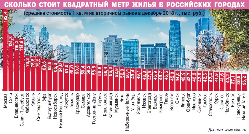 Сколько стоит квадратный метр жилья в российских городах?