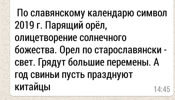 Товарищ Лариса Павловна, вообще-то сейчас по славянскому календарю, идёт год ОРЛА, а свинью пусть празднуют китайцы.