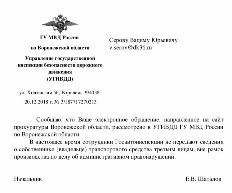 Не могут этого сделать и административные комиссии при управах Ленинского и Центрального районов. Соответствующий ответ был дан начальником воронежского управления ГИБДД Евгением Шаталовым.