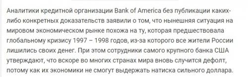Сбербанк может неправильно преподносить информацию о положении дел из-за страха растерять клиентов. Аналитики Bank of America предсказывают в России обесценивание рубля под натиском растущего доллара, что может повторить кризис 97-98 годов.
