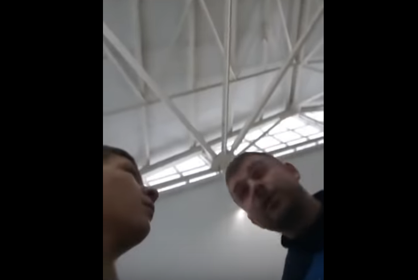 На записи видно, как ученик и учитель физкультуры оскорбляют друг друга, а затем договариваются продолжить беседу в кабинете директора.