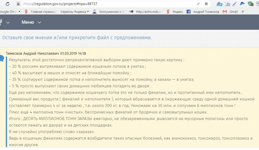Ваш покорный слуга мотивировал данное предложение тем, что кошки стали экологическим, экономическим и демографическим бедствием для России, потому что наша страна занимает первое место в Мире по их количеству