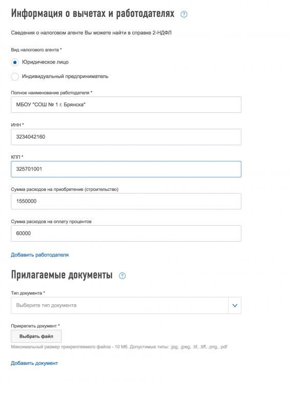 В заявлении на имущественный вычет нужно указать информацию об объекте, работодателях и расходах