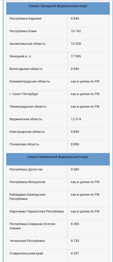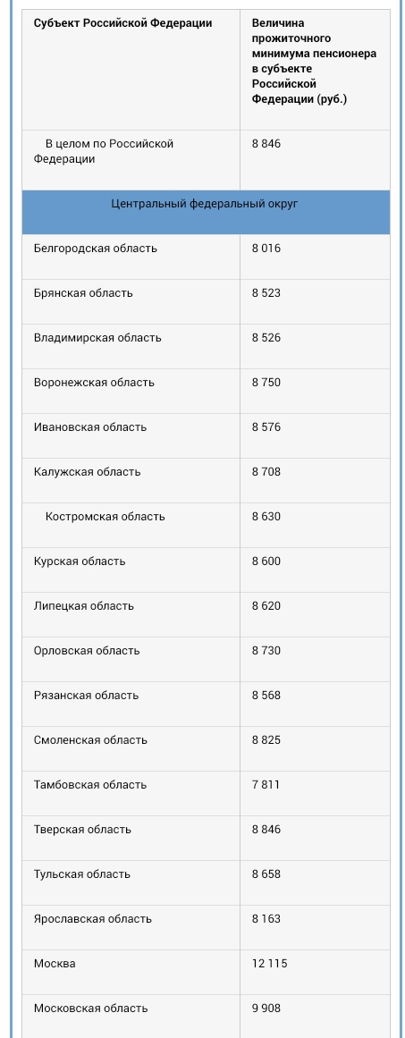 Какой прожиточный минимум установлен в регионах РФ?