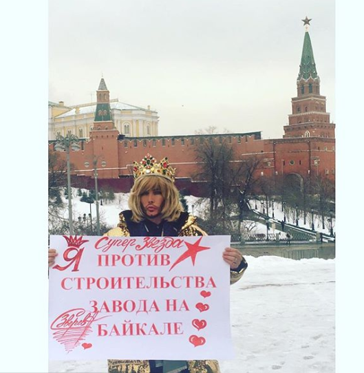 И так, российский стилист, парикмахер и певец Сергей Зверев устроил одиночный митинг на Красной площади.