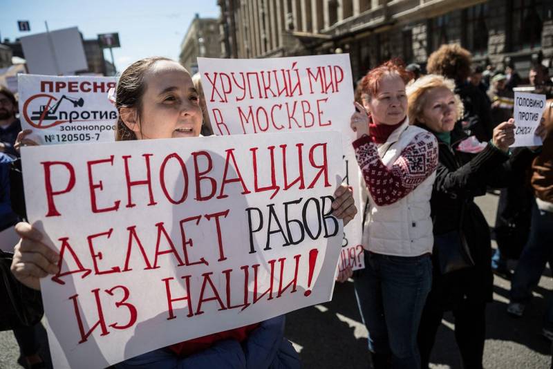 Однако тысячи москвичей, разгневанных потерей любимых домов по воле грубых властей, которым они не доверяют, и не желающих переезжать в новые жилища, пусть большей площади и в новых кварталах, взбунтовались.