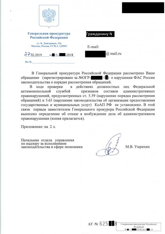 которое я направлял в ФАС РФ
