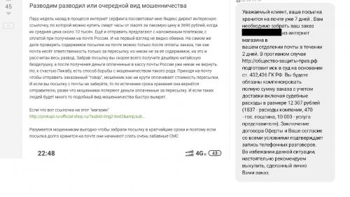 Россияне давно привыкли к тому, что в интернете мошенники то и дело пытаются их «нагреть» на круглую сумму. Зачастую, став жертвой аферистов в сети, граждане даже не обращаются в полицию, потеряв надежду наказать своих обидчиков. Однако, как выяснилось, здесь им неожиданно может помочь «Почта России», а вернее её правила работы с клиентами. О механизме «мести» аферистам на популярном портале Pikabu рассказал один из пользователей В публикации под названием «Разводим разводил или очередной вид мошенничества» мужчина описал схему новой аферы, при котором злоумышленники пытались «кинуть» его на 3 тысячи рублей. В сети пользователь заметил объявление на сайте интернет-магазина, где по акции предлагалось купить гаджет Xiaomi по цене в три раза ниже рыночной. Доверие вызывал тот факт, что оплата за товар производилась наложенным платежом при получении посылки в отделении «Почты России». То есть, наперёд деньги никто не просит, как обычно делают мошенники. Загвоздка в данном случае заключается в том, что покупатель узнаёт, что ему прислали лишь после того, как оплатит всё на почте.