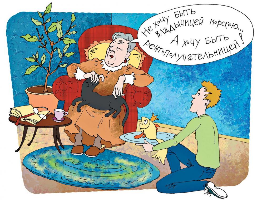 Ей к земле пора привыкать, а она ещё о ренте мечтает.