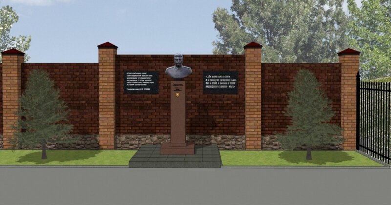 Справа и слева от бюста появятся две таблички. На одной из них будет цитата Сталина, на другой — строки из стихотворения, посвященного генералиссимусу.