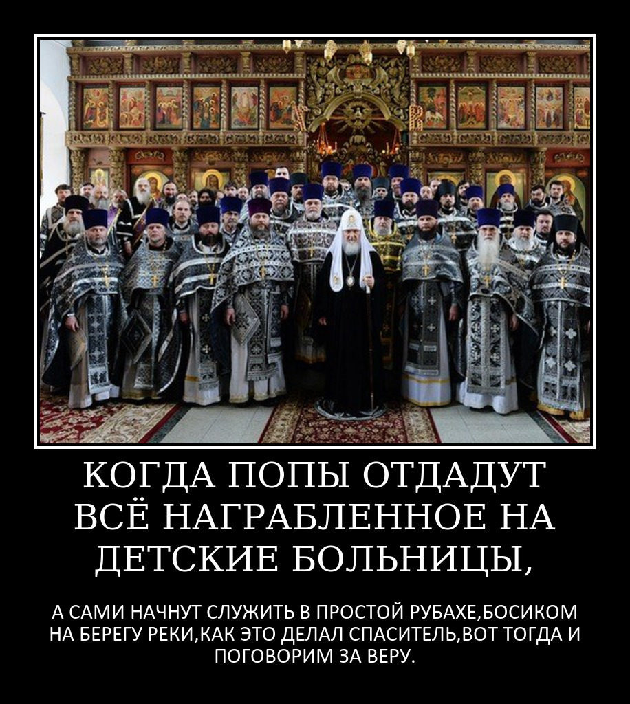 в данном конкретном случае, на картинке изображен патриарх Кирил с братьей, на фотографии надпись, когда попы отдадут награбленное...